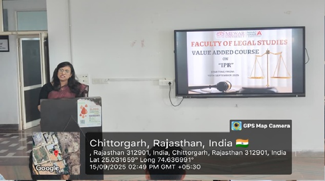 On September 15, 2025, The Faculty of Legal Studies, Mewar University, inaugurated its Value Added Course on Intellectual Property Rights (IPR) for the Academic Year 2025-26.