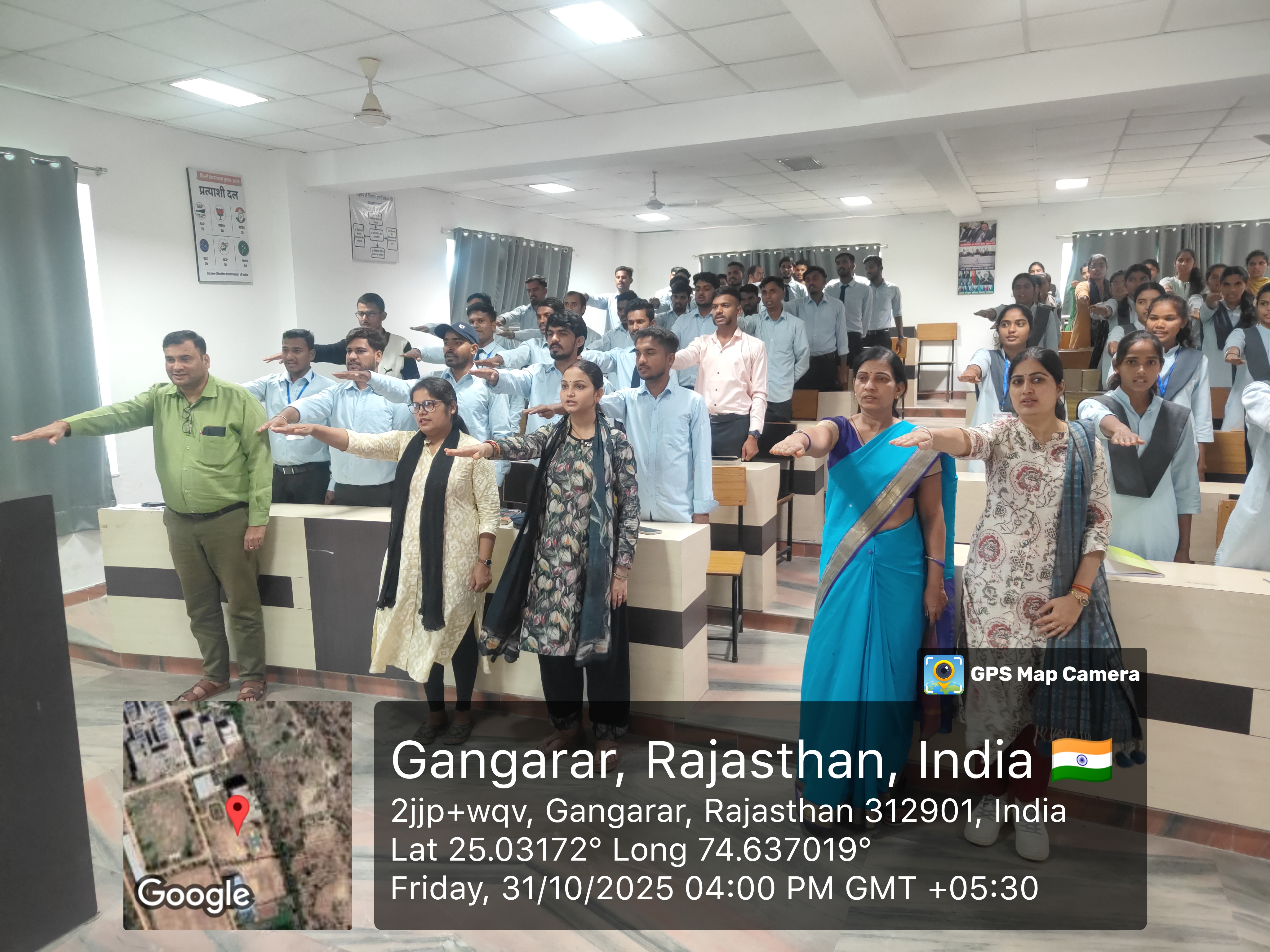 An Essay Writing Competition on the theme “Sardar Vallabhbhai Patel – A Symbol of Unity and Cooperation” was also organized, where B.Ed. students showcased their creativity and understanding of national integration and harmony. The event concluded with teachers and students taking the National Unity Oath, reaffirming their commitment to uphold the values of unity, integrity, and peace.