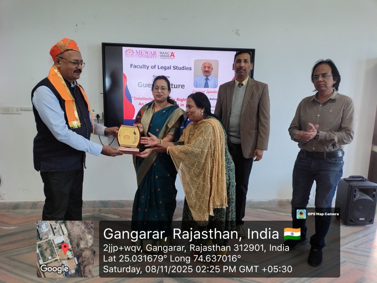 The Faculty of Legal Studies, Mewar University, organized a guest lecture on November 8, 2025, as part of its Value Added Course (VAC) lecture series. The lecture was delivered by Dr. Puneet Bafna, Professor, Amity University Rajasthan, who is a well-known academician and researcher in the field of Intellectual Property Rights.