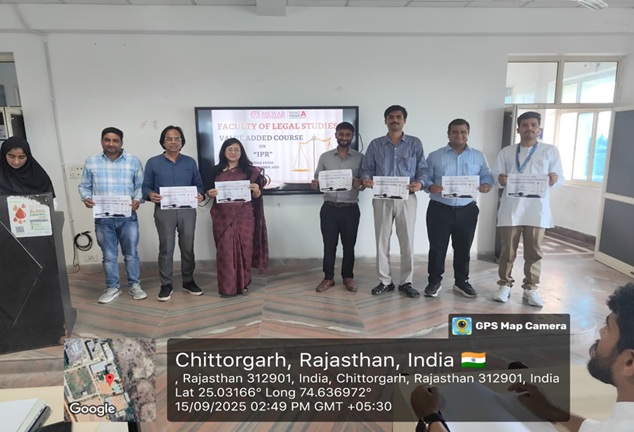 On September 15, 2025, The Faculty of Legal Studies, Mewar University, inaugurated its Value Added Course on Intellectual Property Rights (IPR) for the Academic Year 2025-26.
