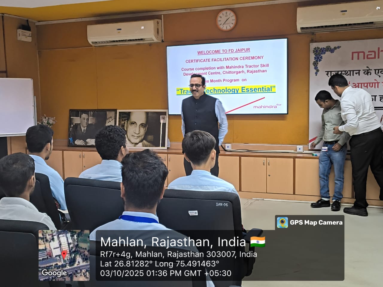 On this occasion, Mr. Dinesh Kumar, Head, Department of Mechanical Engineering, expressed his sincere gratitude to Mr. Don Lewis (Head – Skill Development & Education), Mr. D. C. Trivedi (Plant Head), and Mr. Kulbeer Singh (Head, R&D Department) along with the entire Mahindra Tractors team for their continuous support, cooperation, and valuable knowledge sharing. He also extended heartfelt thanks to the University Administration for their encouragement and motivation in promoting experiential and skill-based learning through such initiatives.