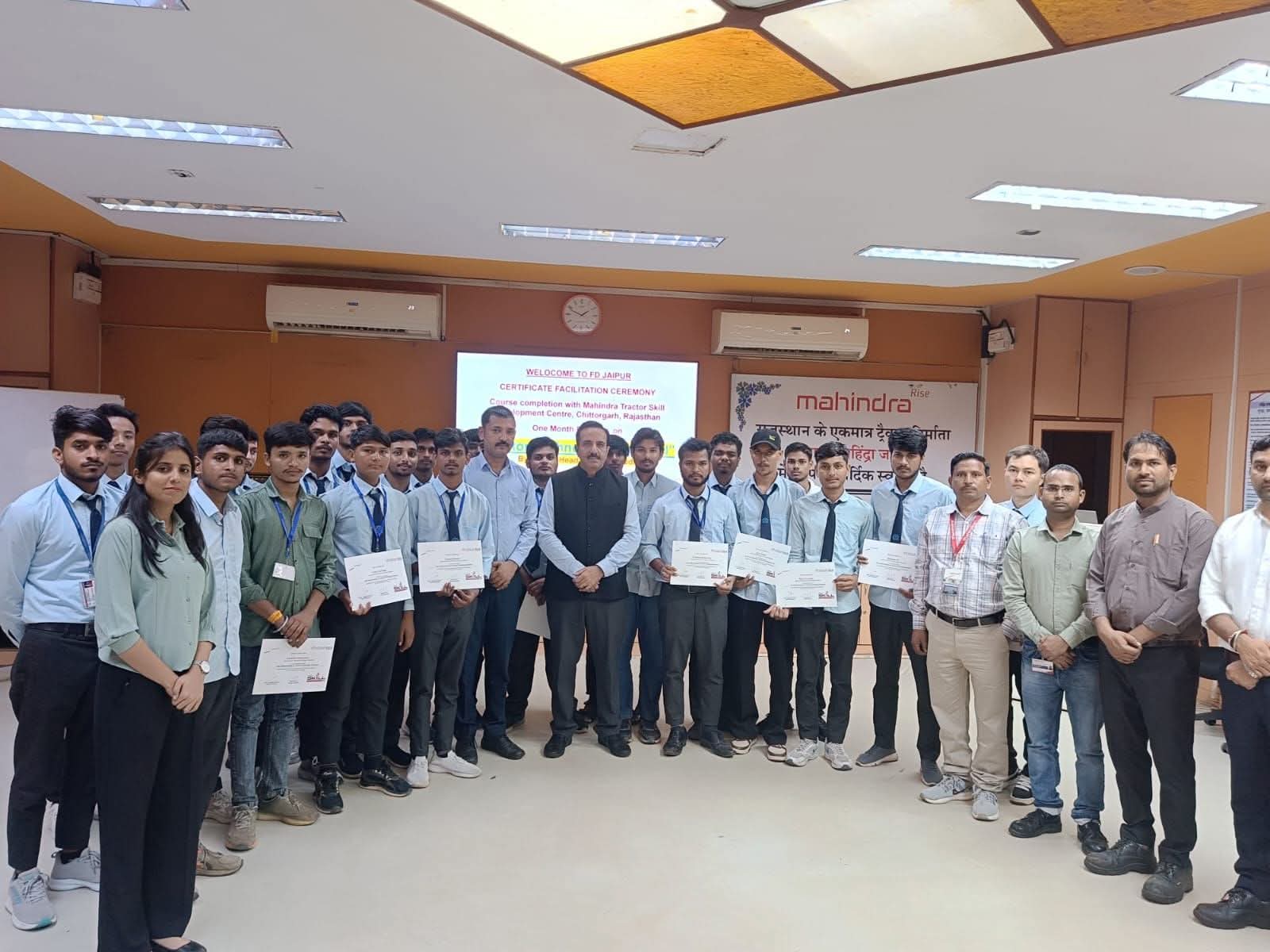 The Department of Mechanical and Electrical Engineering, Mewar University, successfully organized an Industrial Visit and Certificate Distribution Ceremony as part of the Value Added Course (VAC) on “Tractor Operation and Maintenance” on 3rd October 2025 at the Mahindra Tractors Plant, Jaipur.