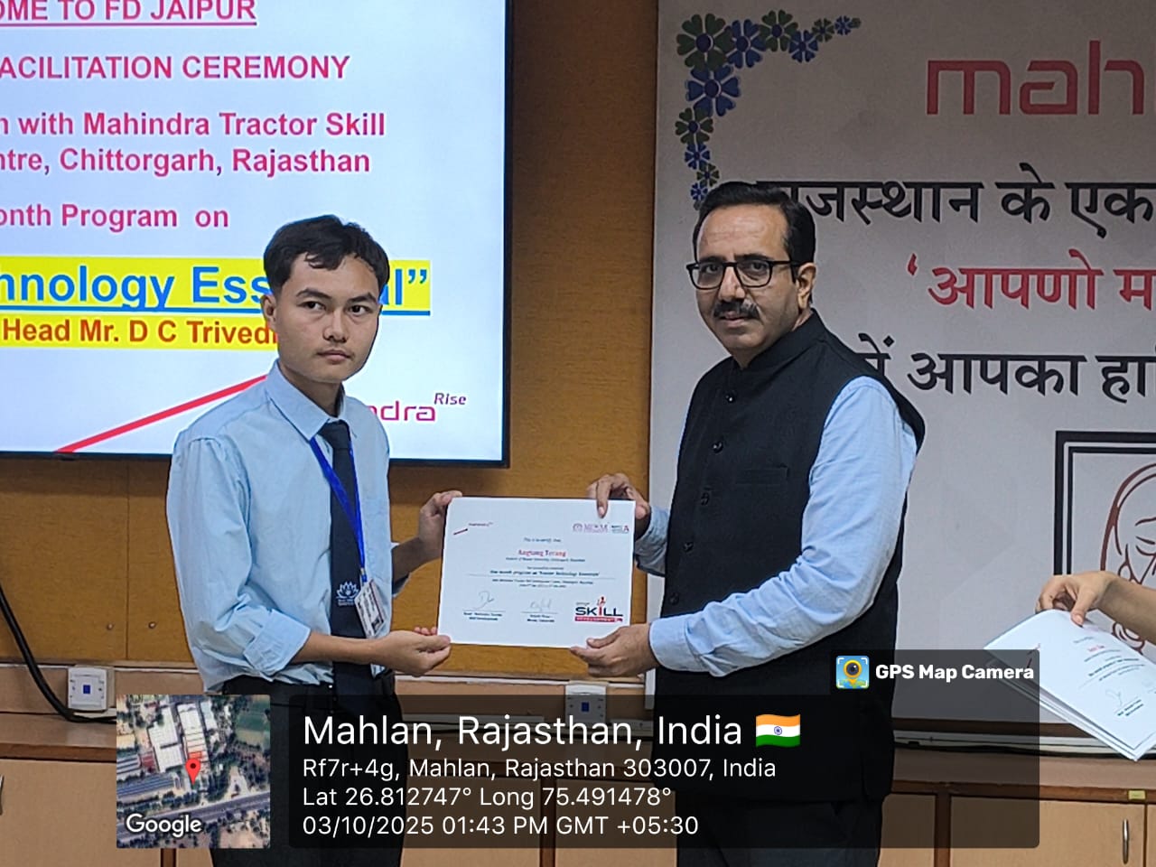 -Mr. Amar Patel, Trainer, Mahindra Tractors Skill Development Centre