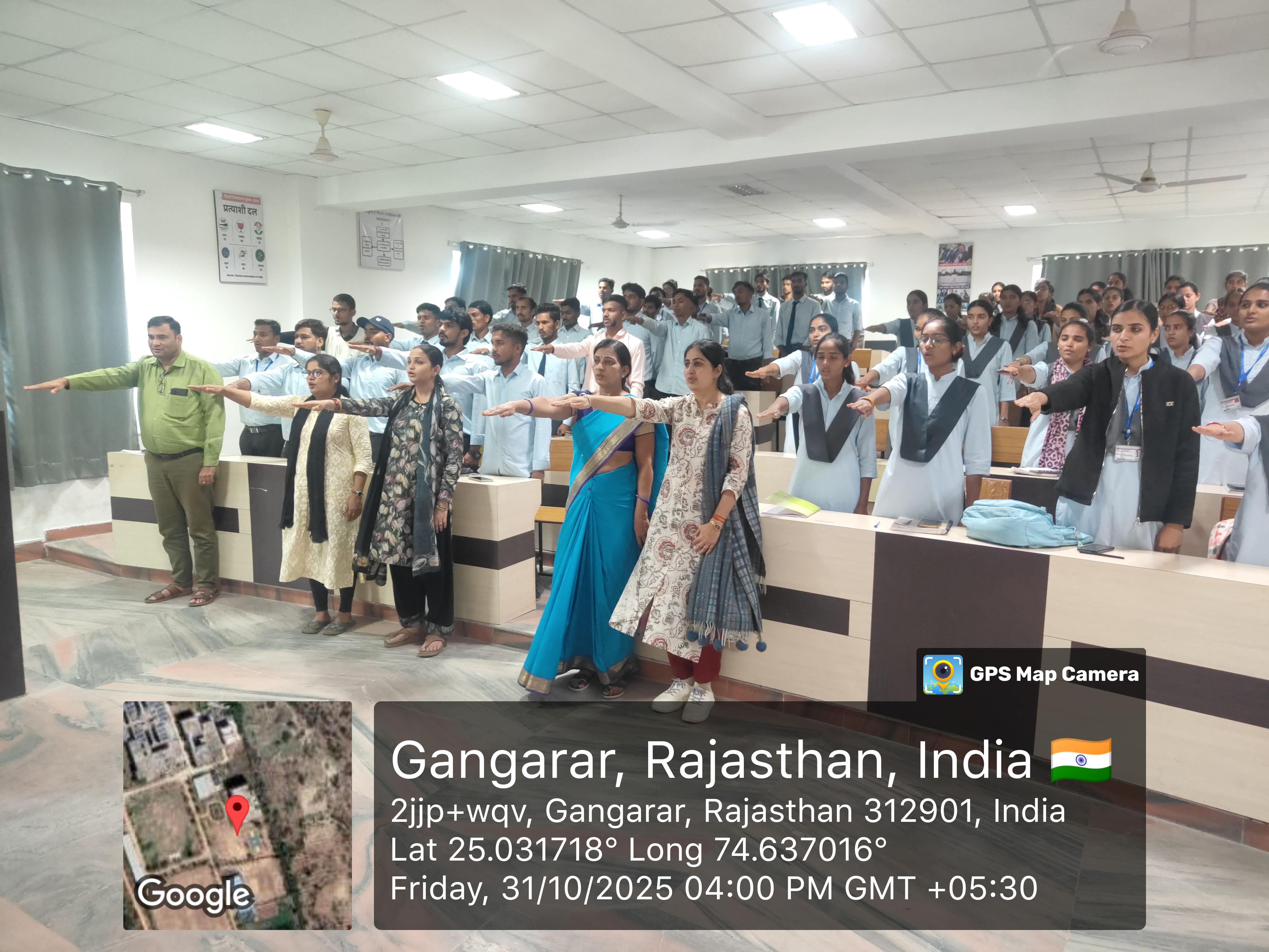 An Essay Writing Competition on the theme “Sardar Vallabhbhai Patel – A Symbol of Unity and Cooperation” was also organized, where B.Ed. students showcased their creativity and understanding of national integration and harmony. The event concluded with teachers and students taking the National Unity Oath, reaffirming their commitment to uphold the values of unity, integrity, and peace.