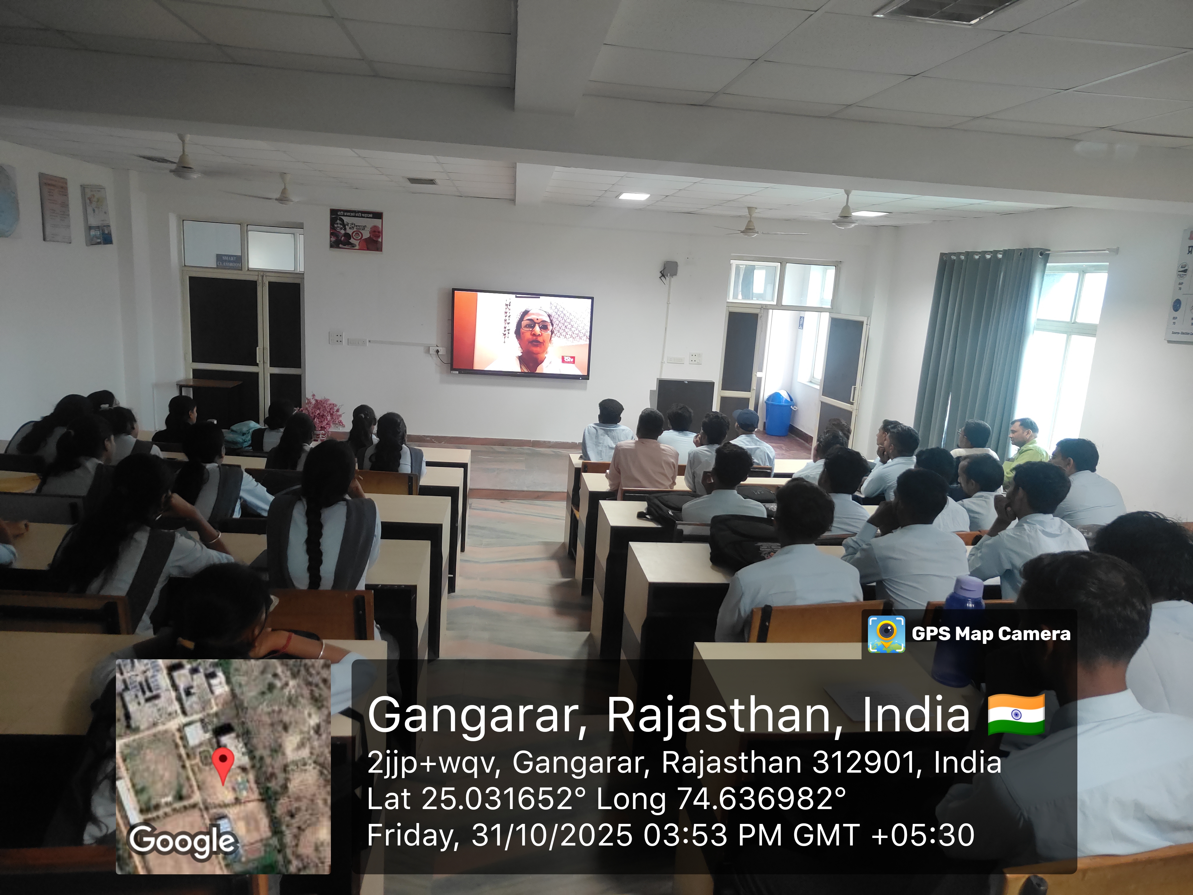 The B.Ed. Department of Mewar University observed National Unity Day on 31st October 2025 with great enthusiasm to commemorate the birth anniversary of Sardar Vallabhbhai Patel, the Iron Man of India. The celebration began with the screening of an inspiring documentary highlighting Sardar Patel’s life, vision, and pivotal role in the unification of India, which deeply resonated with the students.