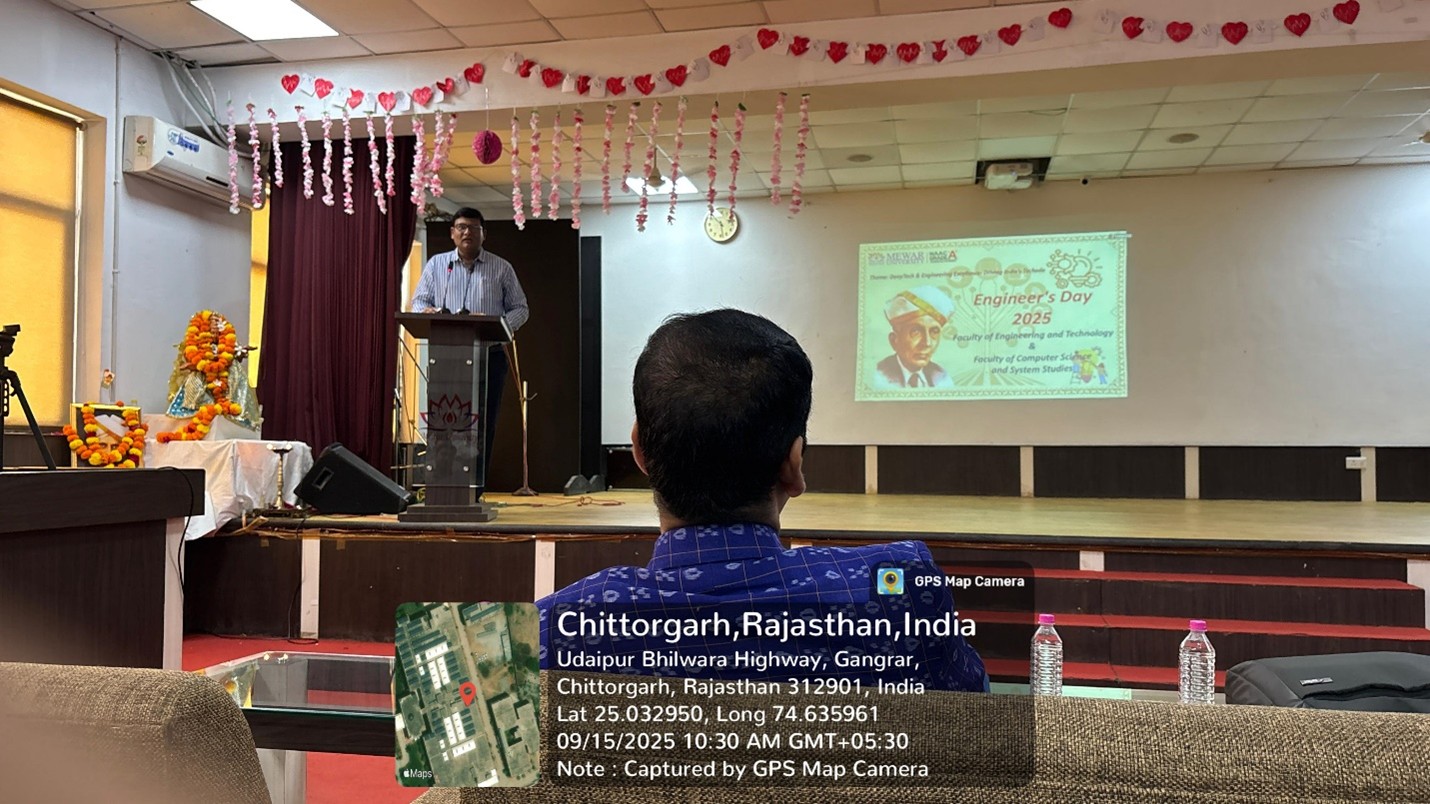 Engineer’s Day is celebrated every year on 15th September to commemorate the birth anniversary of Bharat Ratna Sir Mokshagundam Visvesvaraya, one of the most eminent engineers in India. The Faculty of Engineering and Technology and Computer Science & Engineering & Computer applications, Mewar University, organized a grand celebration of Engineer’s Day 2025 with great enthusiasm and active participation from faculty, students, and staff members.