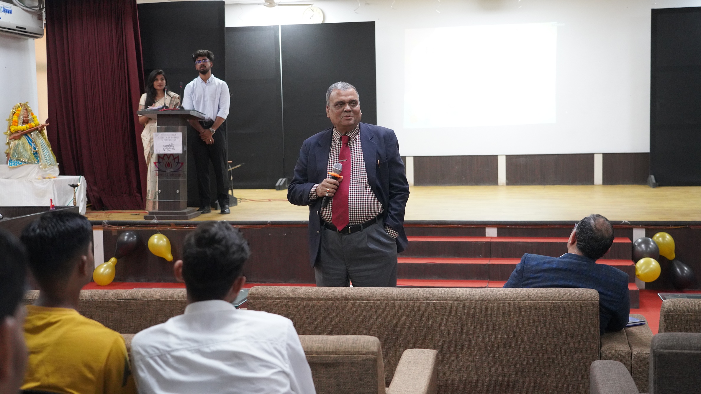 Selected students from different departments delivered short speeches reflecting on the life of Pandit Jawaharlal Nehru, the importance of childhood, and the role of science and technology in shaping the future. Their words added a thoughtful dimension to the event and showcased the confidence and communication skills of the university’s young learners.